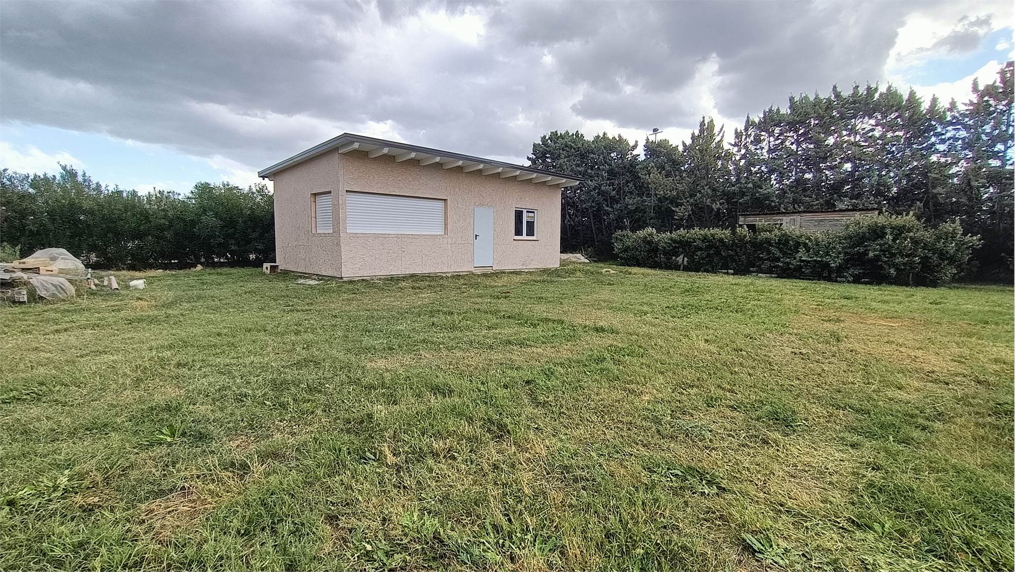 All’interno del terreno è già stato installato un chiosco in legno di circa 44 mq, completo di serranda, porte e infissi. L’interno del chiosco è da completare.